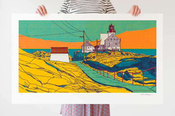 Prisen inkluderer 5% kunstavgift. Opplaget er begrenset til 20 eks. Digitaltrykk. Format 100x60 cm. Trykket på 300 gr Moab Entrada Rag Bright. 100% bomull. Signert og nummerert. Selges i to varianter: