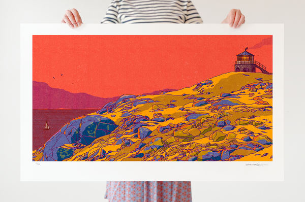 Prisen inkluderer 5% kunstavgift. Opplaget er begrenset til 20 eks. Digitaltrykk. Format 100x60 cm. Trykket på 300 gr Moab Entrada Rag Bright. 100% bomull. Signert og nummerert. Selges i to varianter: